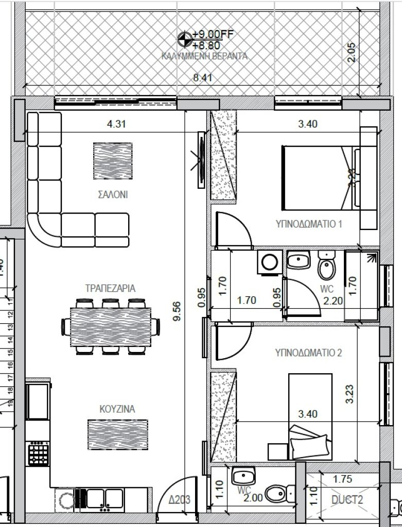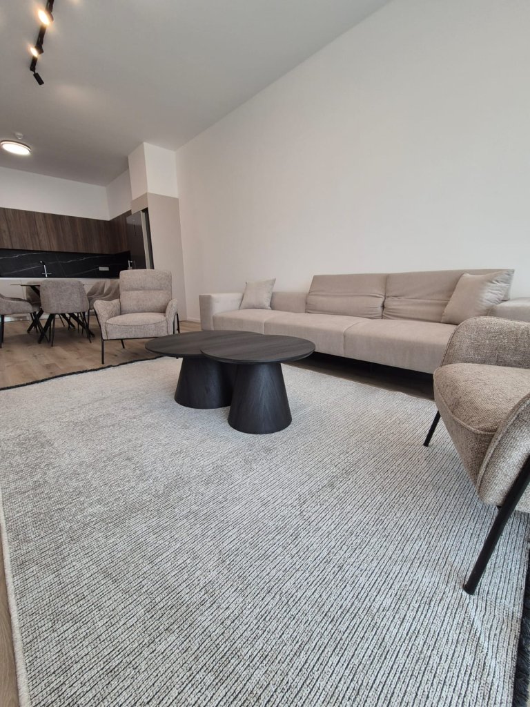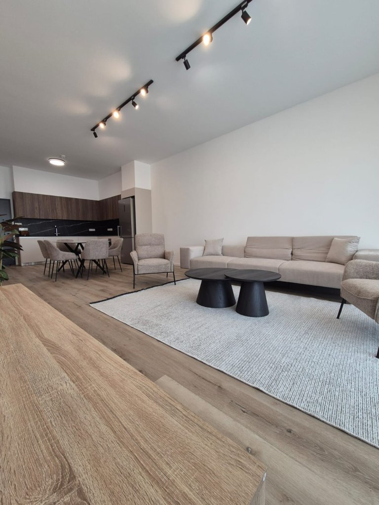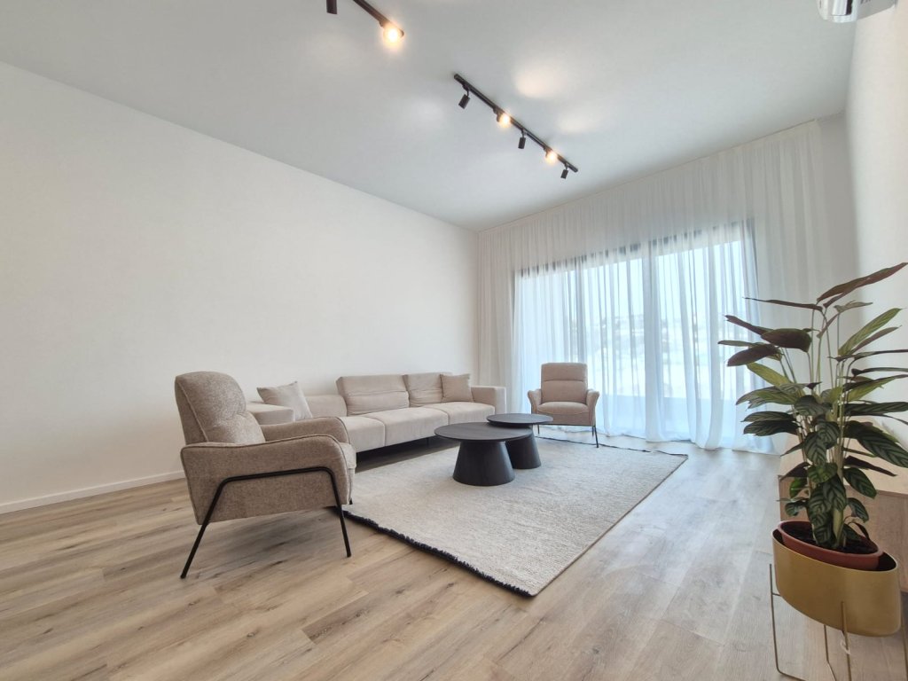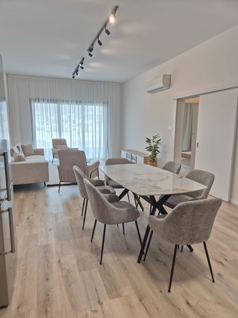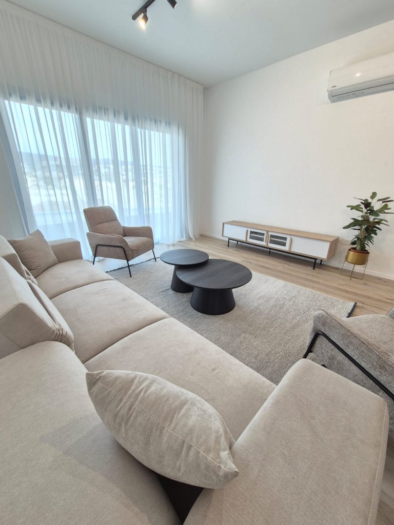 This fully furnished 2-bedroom flat in Agios Athanasios offers a comfortable living space with an open-plan kitchen, living and dining area, and two cozy bedrooms.