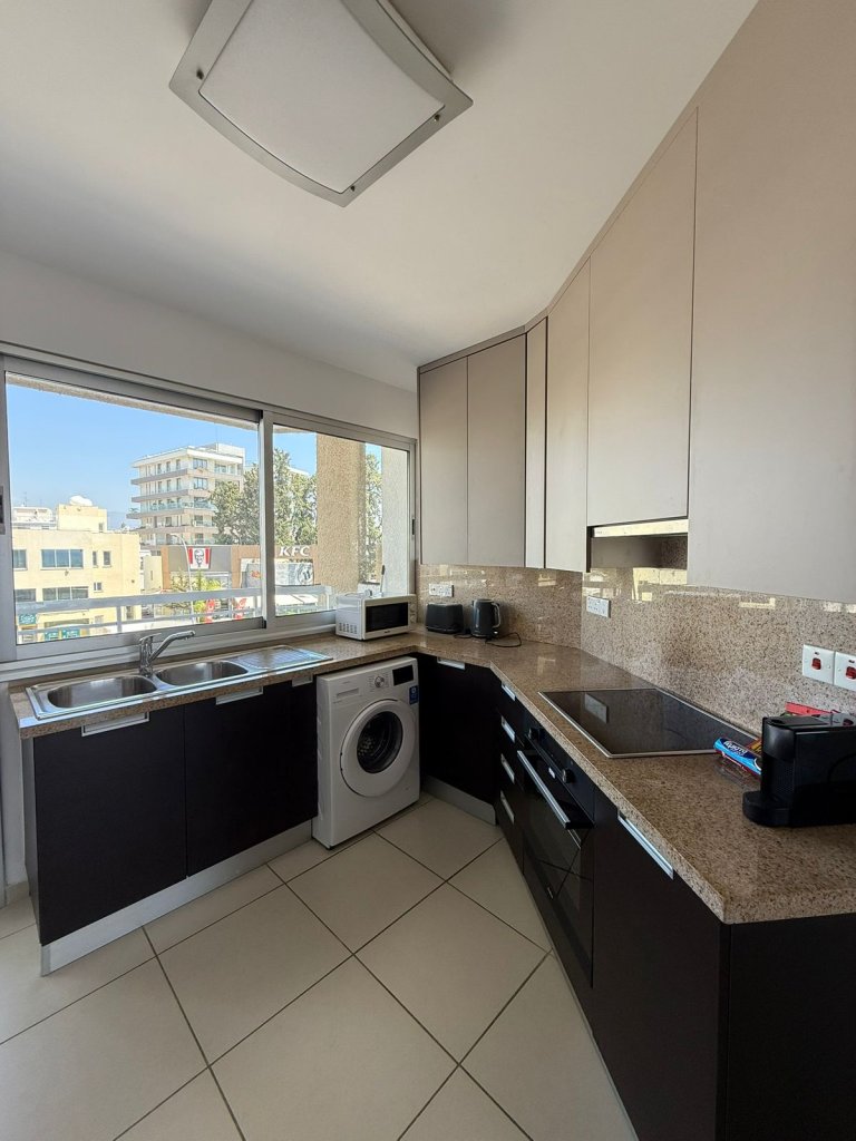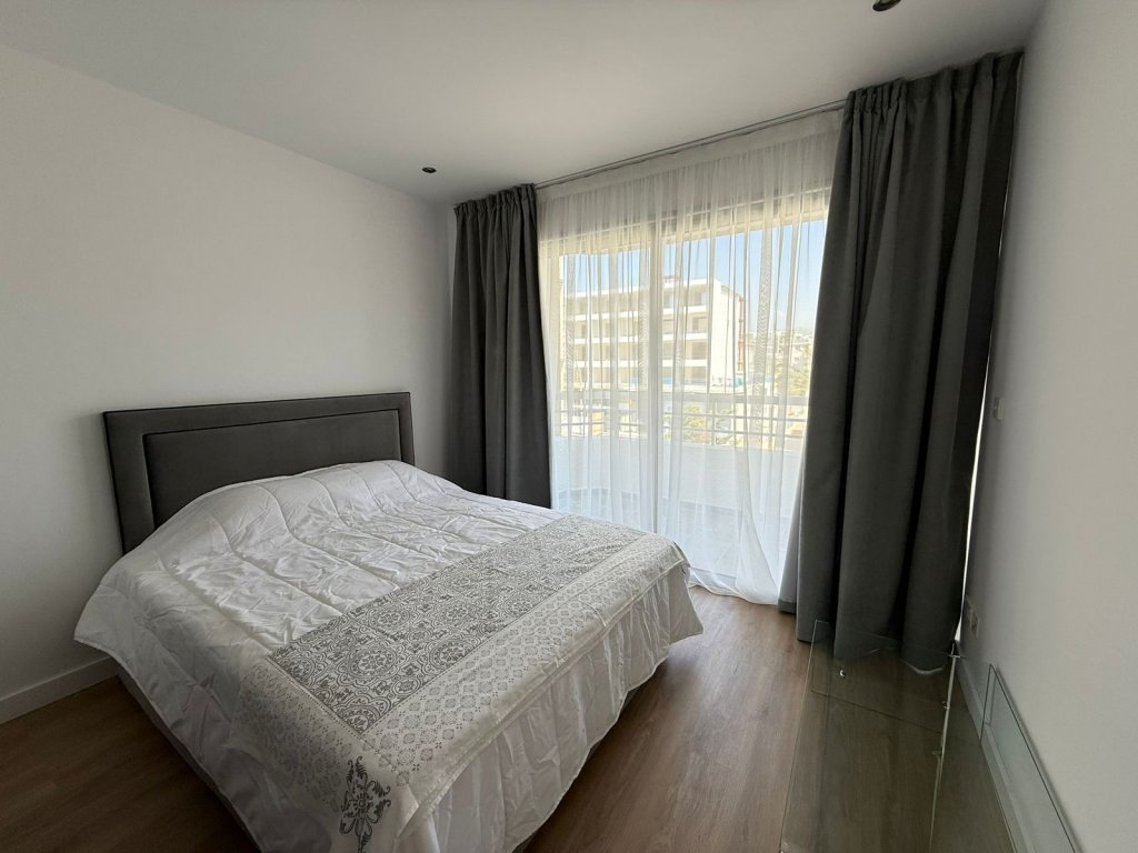 The layout includes a bright living area, a modern kitchen, and one bathroom, all finished to a high standard. Residents enjoy access to a communal swimming pool and an allocated parking space, while the property benefits from a title deed available and no VAT applicable.