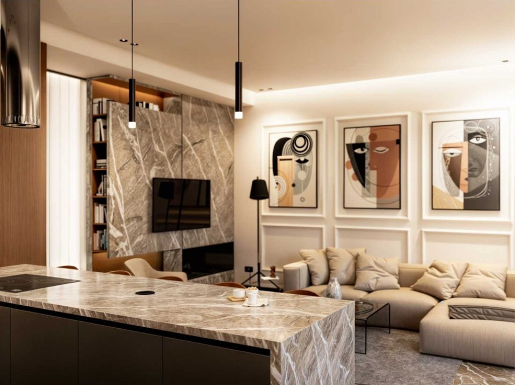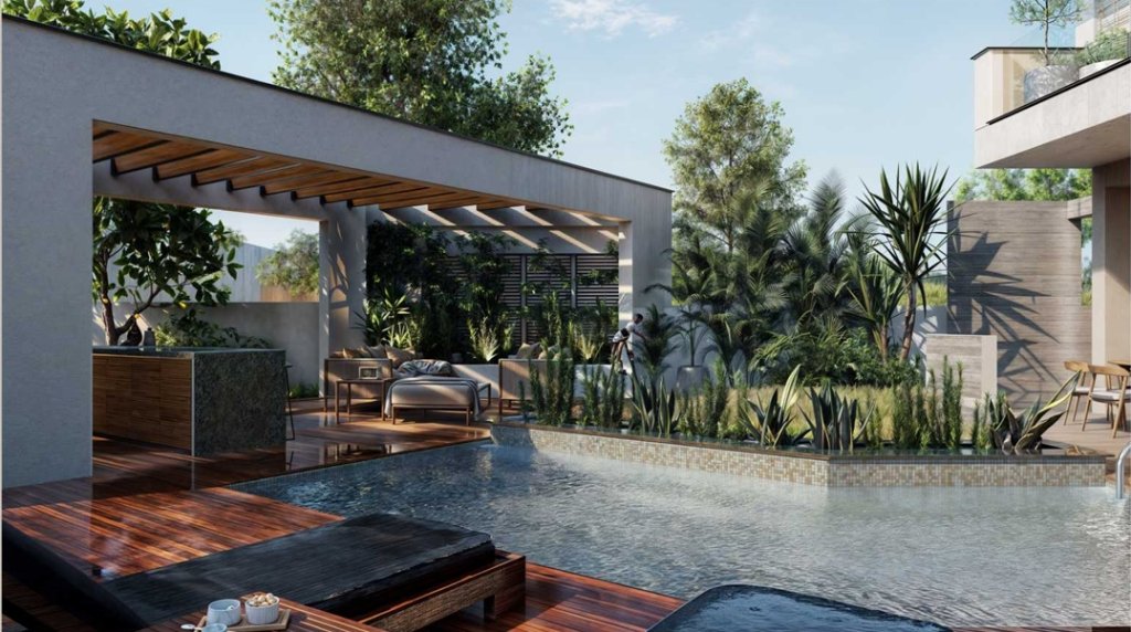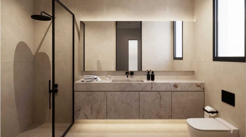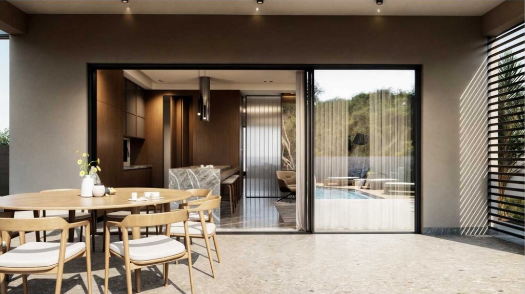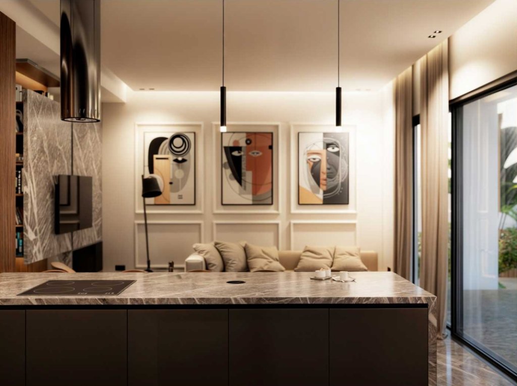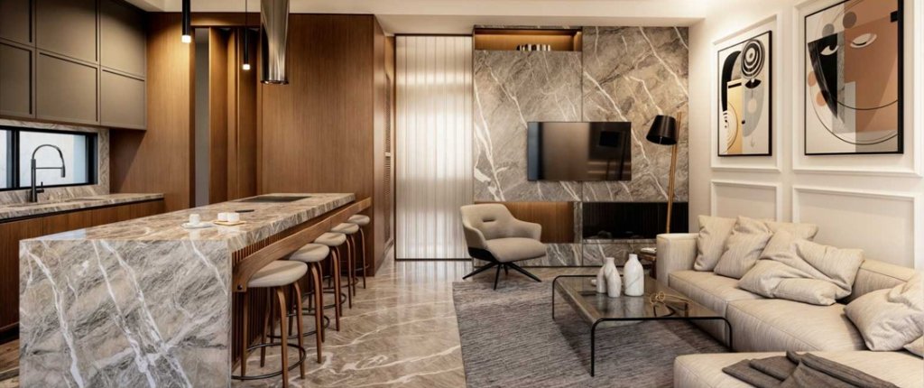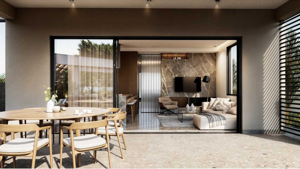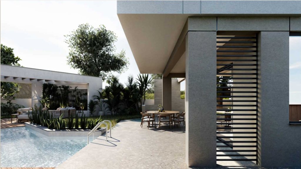 Just a 2-minute drive from the Agios Athanasios highway roundabout, it highlights modern Mediterranean design with refined elements of local stone and wood, adding to its sophisticated appeal.