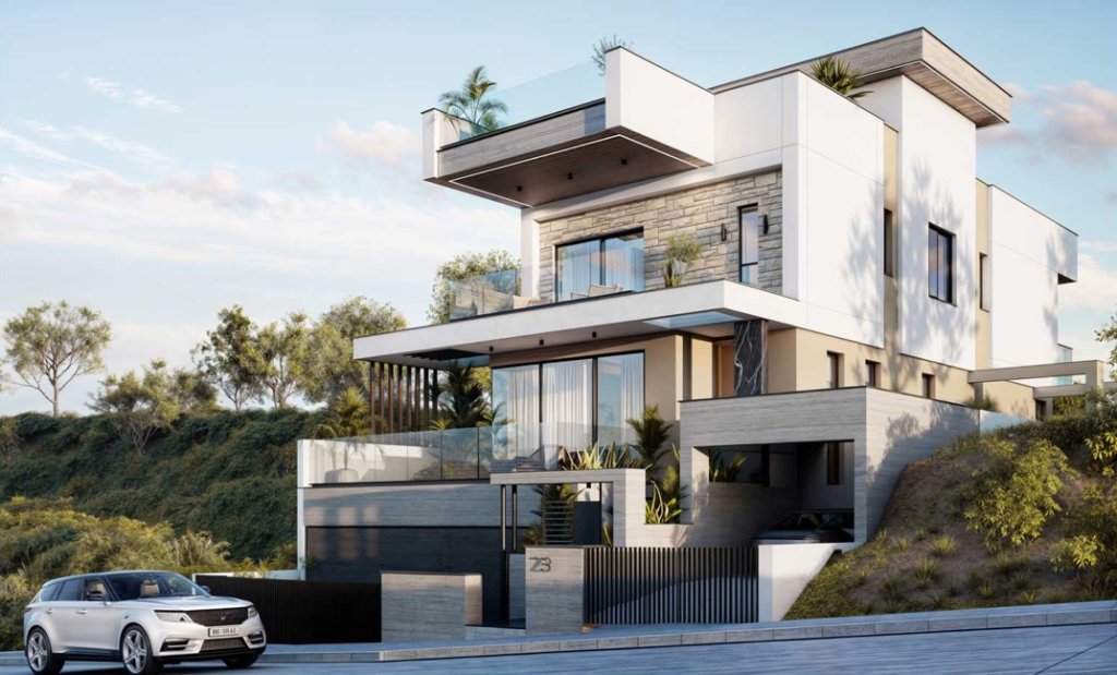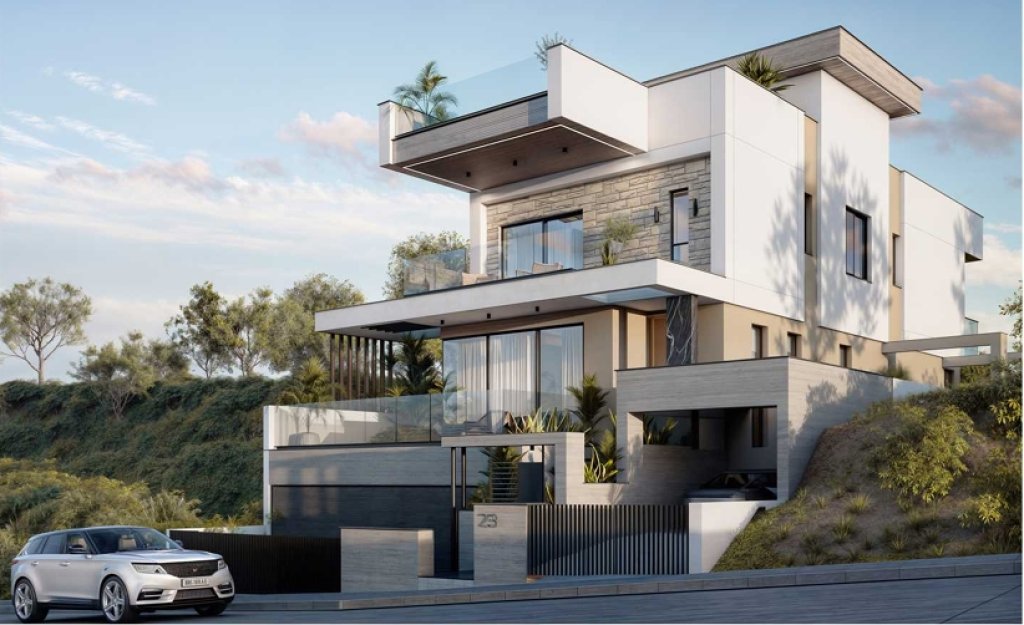Offering 6 beautifully designed bedrooms, including a lavish master suite, the property enjoys stunning mountain and sea views.