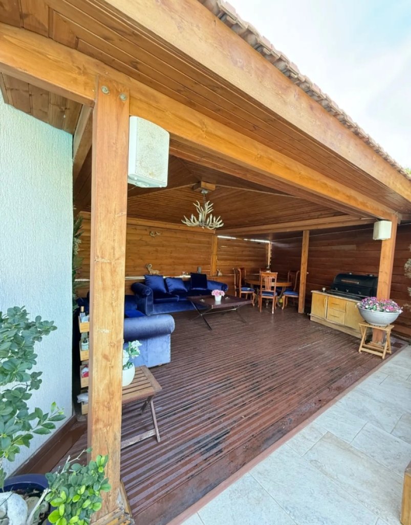 Additional highlights include a maid’s room with en-suite bathroom, covered parking for two vehicles, a wooden pergola, landscaped outdoor areas, and generous storage space.