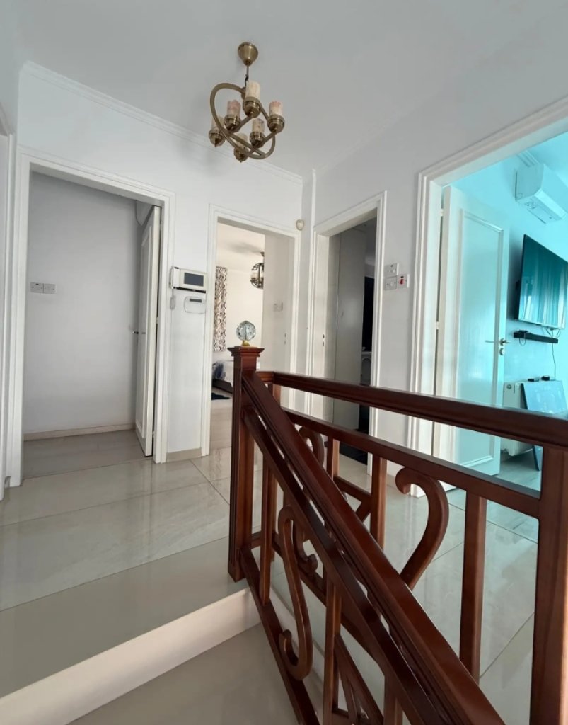 The property features four spacious bedrooms, five bathrooms plus a guest toilet, two fully equipped kitchens, and separate living and dining areas arranged across different levels, creating flexibility for both family living and entertaining.